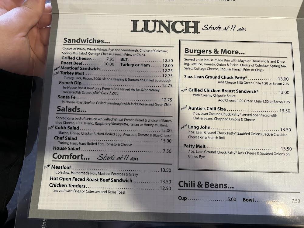 Aunt Nancy's menu highlights comfort food, showcasing the best of traditional recipes. Breakfast options include fluffy pancakes, omelets, and classic bacon and eggs. It's hard to resist the buttermilk pancakes or the cheesy western omelet.